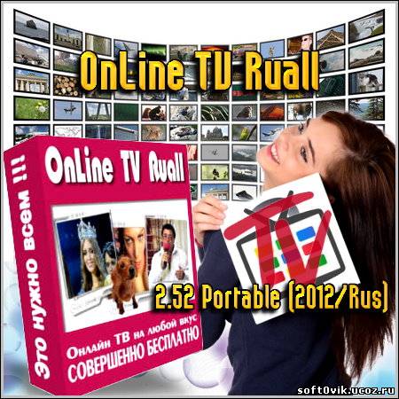 Перед Вами новая версия 2.52 программы OnLine TV Ruall. Хватит платить весьма немалые деньги за кабельное и спутниковое телевидение. Вполне достаточно уже и того, что Вы оплачиваете Интернет. Просто скачайте бесплатную программу "OnLine TV Ruall" и смотрите более 100 всяких и разных русско-язычных телевизионных интернет каналов на полную халяву 24 часа в сутки, 7 суток в неделю, 365 дней в году. При этом никаких денег за просмотр от