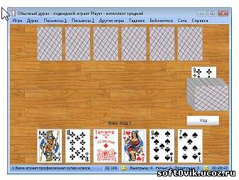 Карточная игра в дурака: - карточная игра, в которую могут играть от 2 до 6 игроков. Существует 2 основных вида игры в дурака - это подкидной и переводной дурак. Игра включает: 35 разновидностей игры в дурака: албанский, армянский, большой, верю не верю, двухкозырной, дорожный, занудный, козырной, королевский, круговой, магаданский, наваленный, невидимый, оборотный, отбойный, простой, подкидной, переводной, переводной 2, трешка, чешский (7 вариантов), чукотский, японский. 30 популярных пасьянсов: баян, дважды два, джокер, елочки, желание, карл