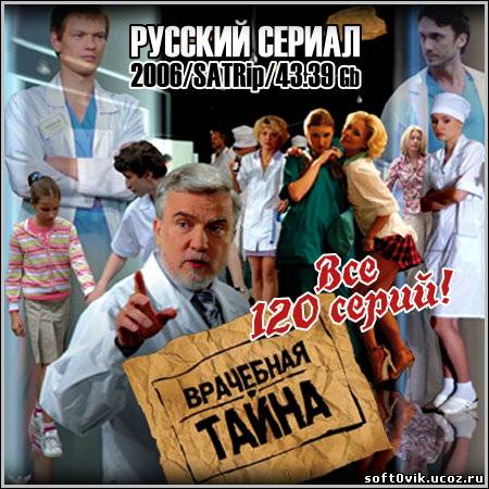 Название: Врачебная тайна - Все 120 серий Год выхода: 2006 Жанр: Драма Режиссер: Петр Штайн, Александр Сухарев, Василий Сериков В ролях: Владислав Долгоруков, Галина Сазонова, Степан Рожнов, Андрей Барило, Дарья Юрская, Мария Костикова, Магомед Костоев, Татьяна Смоляницкая, Сергей Иванов, Вадим Медведев, Людмила Дребнева, Александр Козлов, Екатерина Александрушкина, Ульян